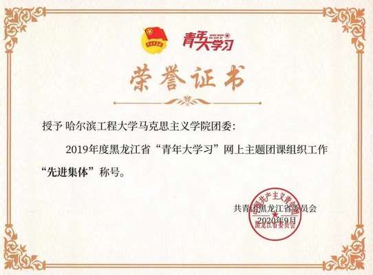 永乐高ylg030net荣获2019年度黑龙江省“青年大学习”主题团课组织工作“先进集体”称号。
