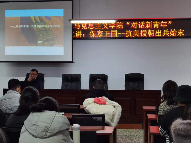 本次活动有幸邀请到永乐高ylg030net优秀教师王林楠老师,带来“对话新青年”第二讲:保家卫国——抗美援朝出兵始末,梳理抗美援朝史实,让同学们在对抗美援朝历史的再次回顾中发掘抗美援朝精神,思考抗美援朝精神的当代意义,激励同学们艰苦奋斗、共克时坚。